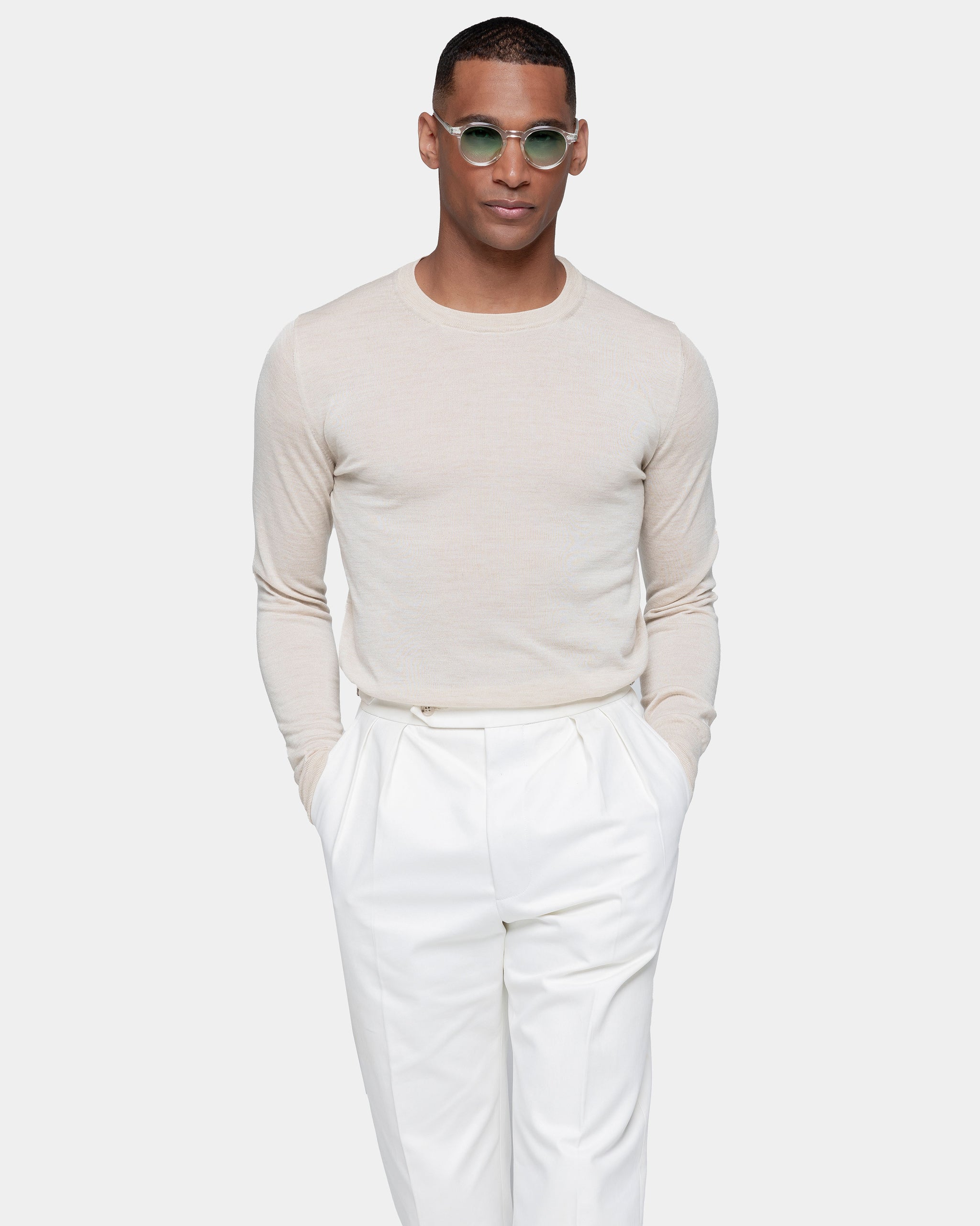 Scopri la nostra collezione di maglie su misura in Lana Merino extrafine e Seta 2/48. Disponibili con scollo tondo, scollo polo con bottoni in madreperla, modello lupetto e hoodie. La lussuosa miscela di Lana Merino extra-fine e Seta di Filatori conferisce alla maglia un aspetto lineare in cui la mischia preziosa mette in particolare risalto la brillantezza della seta.