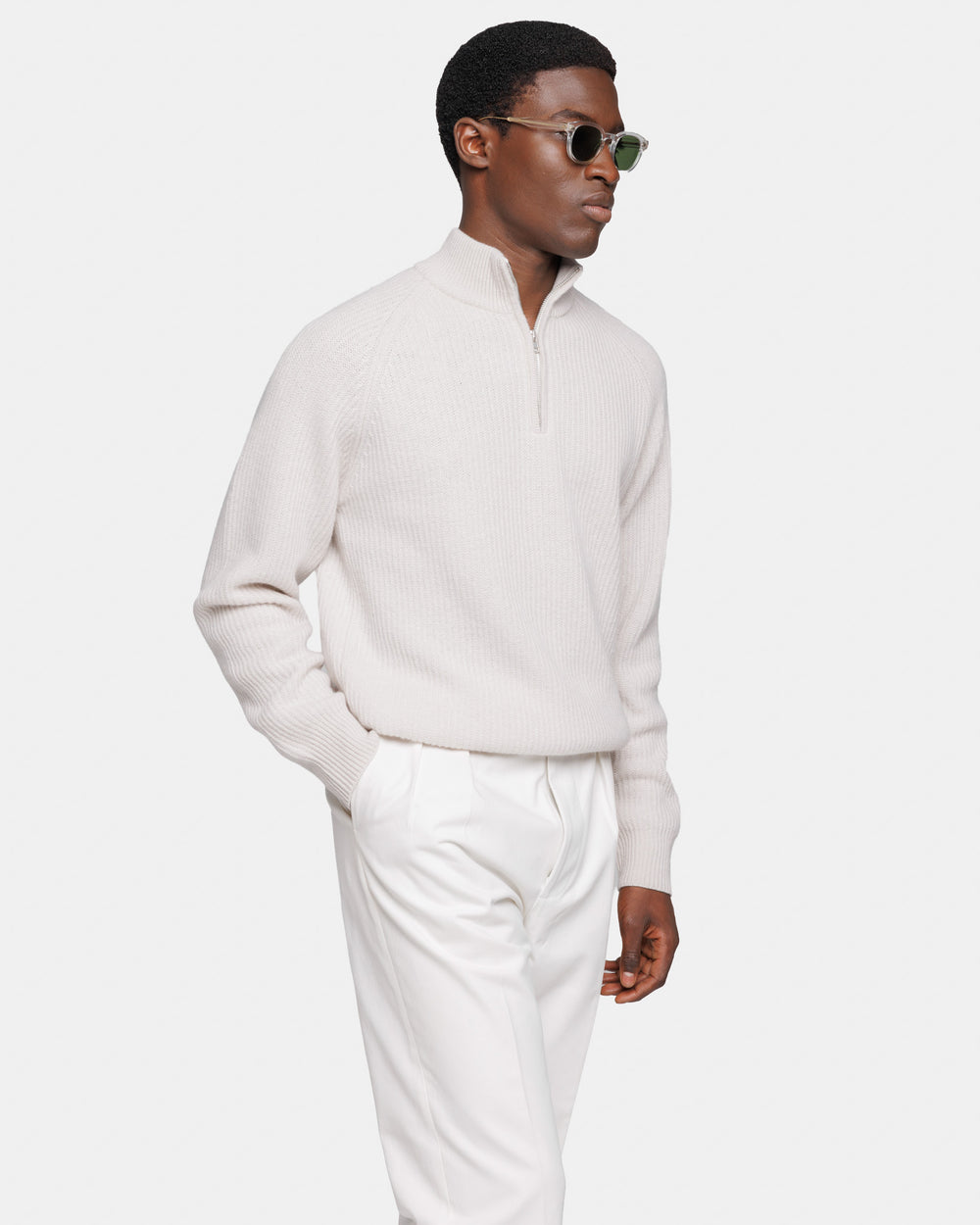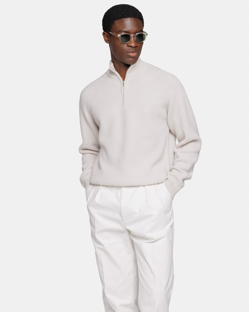 Maglia manica lunga Lupetto con Zip Meringa Lana Ultra-Soft Super 100's| Filatori