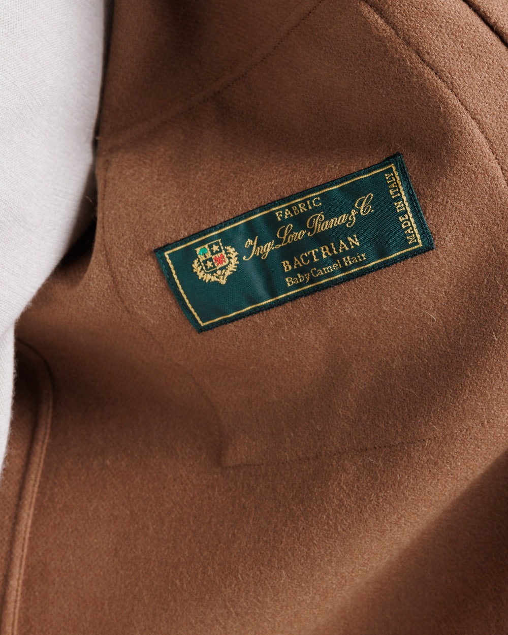 Il tessuto Bactrian 100% Baby Camel Hair Loro Piana made in Italy è una delle espressioni più alte del lusso tessile italiano. Ricavato dal primo vello del cammello battriano, raccolto naturalmente durante la muta, è una fibra rarissima, estremamente fine e morbida, paragonabile al miglior cashmere ma più resistente. Offre un’eccellente termoregolazione, risultando caldo ma traspirante, ed è ideale per capi come le overshirt grazie alla sua leggerezza con struttura. Al tatto è setoso, visivamente elegante e opaco, con una profondità naturale del colore tabacco. Lavorato interamente in Italia, rappresenta un equilibrio perfetto tra comfort, raffinatezza e durabilità.
